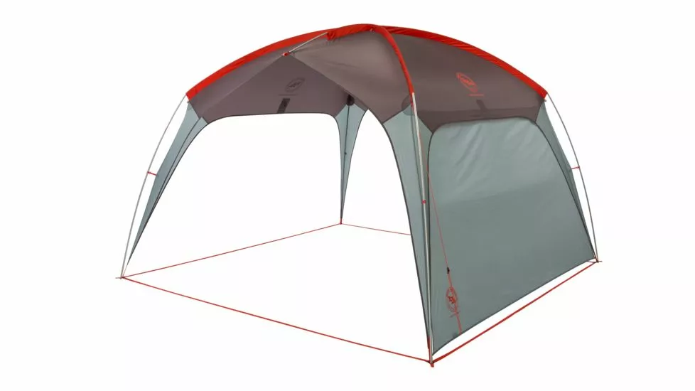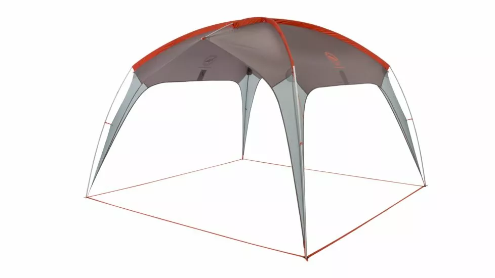 Sunshade or group shelter,Two large, wide-open entry points make walking in and out of the shelter without having to duck, a breeze,Pre-bent pole architecture offers tons of volume and livable space,Fits over picnic table,Two open sidewalls,Accessory Wall panel may be attached to any side with toggles to block prevailing wind or sun, or may be removed to create four open sides – sold separately,Webbing frame at ground level creates additional structural stability,Reflective guylines and webbing on corners and suggested anchor points,Ready to pitch; with pre-cut guy lines and tensioners attached to shelter,Multiple interior loops for attaching accessories, Includes 8 aluminum hook stakes